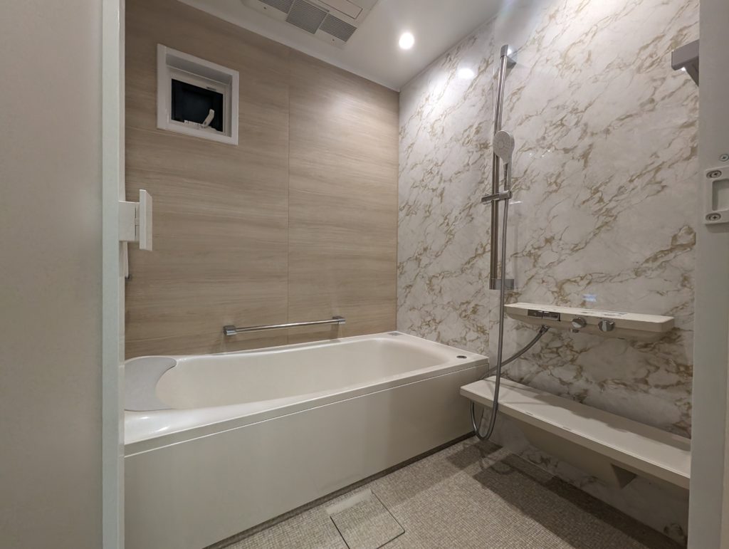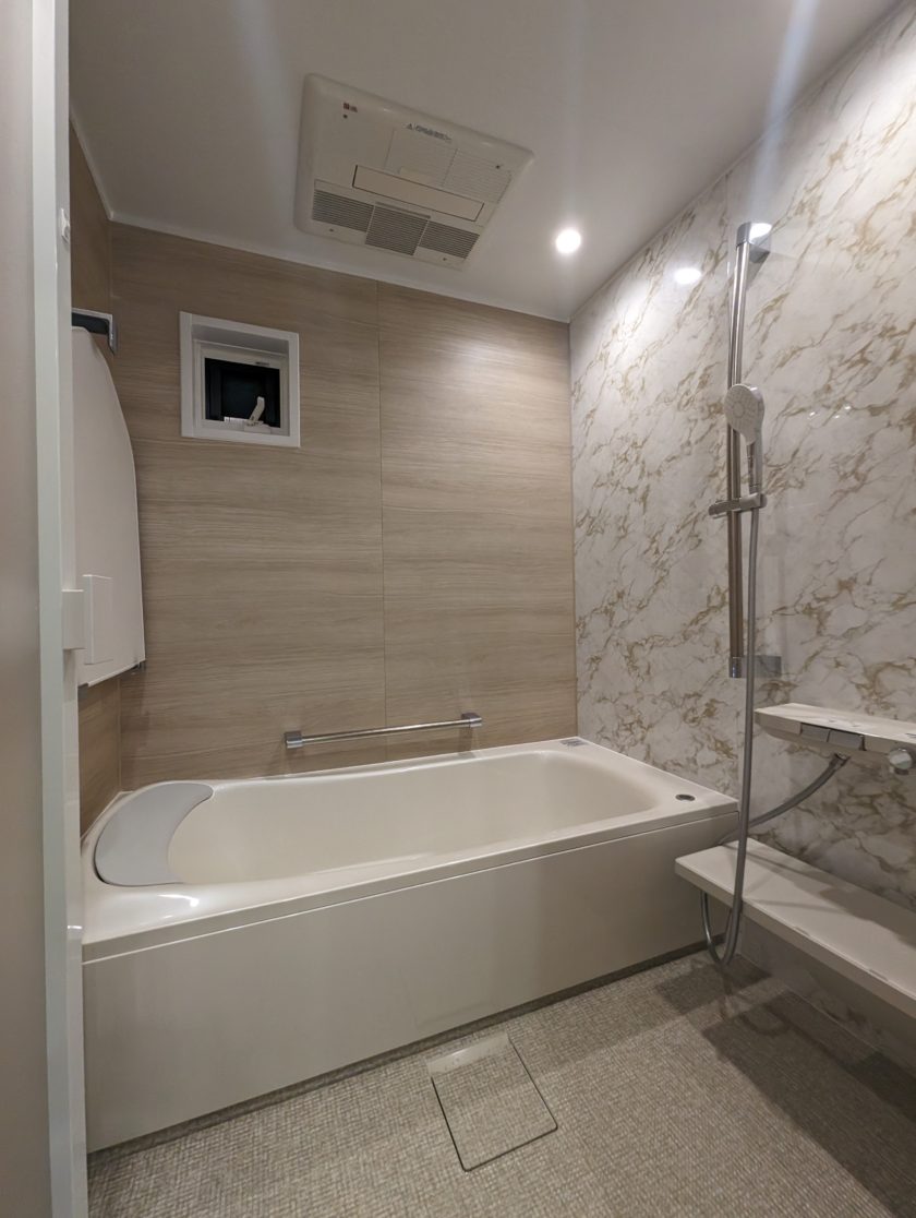 今回は暖かい浴室・洗面所工事です。もとは北面側のタイル張り浴室、大きな窓が2面もあるお風呂でした。夏は良いけど冬が寒すぎる・・・との事で既存窓は2重窓に変更、ユニットバス本体に断熱材が組み込まれているユニットバス、浴室と洗面所も暖めてくれる浴室暖房乾燥機等を組み込ませていただきました。