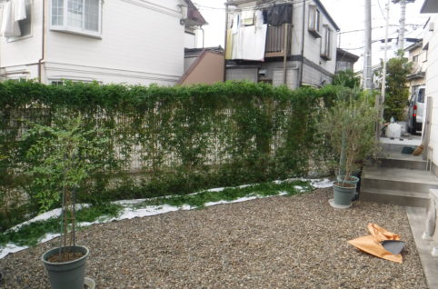ベンジャミンがとても素敵な生垣ですがちょっともさもさしてきました。生垣の剪定と草むしりをさせていただきました。通院患者様からだいぶすっきりして気持ちがよい!と医院様にお褒めの言葉を頂いたそうです。 施工前 施工後 施工中