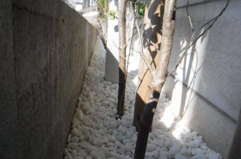 植栽廻りの雑草のお手入れに手を焼かれていた施主様 草引きの手間を無くすと同時に美観もUPしたいということで砕石の補充等をました 雑草が生えない冬の時期の施工で今年の夏も安心です この場所30...